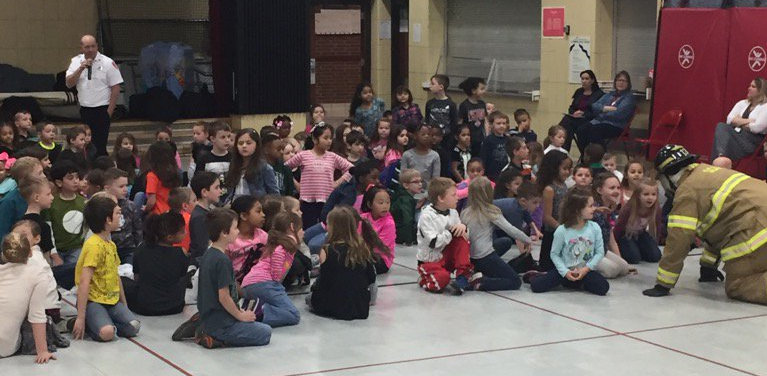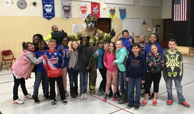 Cappy the Fire Dog makes his first public appearance at Dieck Elementary on March 14, 2017